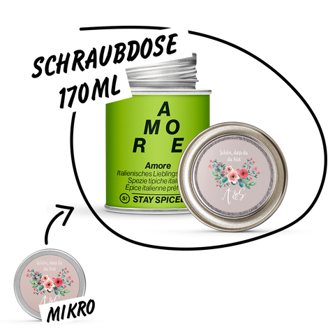 Unsere personalisierten Gewürzdosen sind das perfekte Gastgeschenk, um eure Liebe und Wertschätzung auf geschmackvolle Weise auszudrücken.