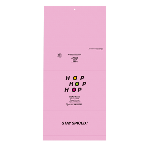 Als besonderes Osterspecial erhältst du zu jeder STAY SPICED ! Geschenkbox zu Ostern unsere HOP, HOP, HOP-Oster-Banderole mit Ostermotiv gratis dazu. Die dekorative Oster-Banderole macht deine Geschenkbox im Handumdrehen zum perfekten Ostergeschenk – ohne Aufpreis und nur für kurze Zeit.